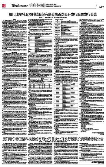 厦门瑞尔特卫浴科技股份有限公司首次公开发行股票投资风险特别公告