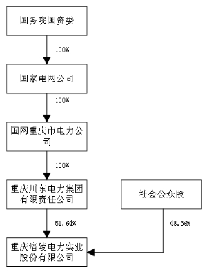 (上接B5版) 截至重组报告书签署日,川东电力直接持有本公司51.64%的股权,为本公司的控股股东。本公司实际控制人为国务院国资委。本公司与控股股东及实际控制人之间的产权及控制关系如下: ■ (二)控股股东及实际控制人的基本情况 公司控股股东为重庆川东电力集团有限责任公司,直接持股比例为51.64%。川东电力的基本信息如下所示: ■ 公司的实际控制人为国务院国资委。 (三)间接控股股东的基本情况 公司的间接控股股东为国家电网公司和国网重庆市电力公司。国家电网公司基本情况如下: ■ 国网重庆市电力公司基本情况如下: ■ 截至重组报告书签署日,除公司控股股东川东电力外,公司无其他持股5%以上的股东。 五、上市公司主营业务发展情况 上市公司主营电力供应与销售,供电区域主要集中于重庆市涪陵区行政区域,以110KV输电线路为骨干网架,以35KV、10KV线路为配电网络。 上市公司2013-2014年及2015年1-9月业务收入构成如下表: 单位:万元 ■ 数据来源:涪陵电力2013年、2014年年报及2015年三季度审计报告。六、上市公司最近三年的主要财务指标 (一)主要财务数据 1、资产负债主要数据 单位:万元 ■ 2、利润表主要数据 单位:万元 ■ 3、合并现金流量表 单位:万元 ■ (二)主要财务指标 ■ 七、上市公司重大资产重组情况 截至重组报告书签署日,上市公司最近三年不存在重大资产重组情况。 八、上市公司及其现任董事、高级管理人员涉嫌犯罪或违法违规情况 截至重组报告书签署日,上市公司及其现任董事、高级管理人员最近三年内不存在涉嫌犯罪或违法违规的情况。 九、上市公司及其现任董事、高级管理人员近三年受行政处罚或刑事处罚情况 截至重组报告书签署日,上市公司及其现任董事、高级管理人员最近三年内均未受到与证券市场相关的行政处罚或刑事处罚。 十、上市公司及其现任董事、高级管理人员诚信情况 截至重组报告书签署日,上市公司及其董事、高级管理人员最近三年内不存在未按期偿还的大额债务、未履行承诺或受过证券交易所公开谴责的情况。 第五节 交易对方 一、本次交易对方基本情况 ■ 二、交易对方设立及股本变动情况 (一)设立 2013年1月18日,国家电网公司发布《国家电网公司关于组建国网节能服务有限公司的通知》(国家电网人资[2013]112号):决定组建国网节能服务有限公司,国网节能服务有限公司是国家电网公司依据《公司法》等法律法规出资设立,为国家电网公司的全资子公司。 2013年1月25日,北京中怡和会计师事务所有限公司出具《国网节能服务有限公司验资报告》(中怡和验字[2013]第072号),截至2013年1月25日止,国网节能服务有限公司(筹)已收到全体股东缴纳的注册资本,合计人民币30,000万元。股东国家电网公司以货币出资30,000万元。 国网节能设立时的股权结构如下: ■ (二)2014年增资 2014年5月7日,国家电网公司作出股东决定:同意以货币出资的方式向国网节能服务有限公司增加注册资本人民币22亿元。增资完成后,国网节能服务有限公司的注册资本由人民币3亿元增加至人民币25亿元。 此次增资后,国网节能服务有限公司的注册资本为人民币25亿元。 (三)2015年增资 2015年10月12日,国家电网公司作出股东决定:同意以货币出资的方式向国网节能服务有限公司增加注册资本人民币10亿元。增资完成后,国网节能服务有限公司的注册资本由人民币25亿元增加至人民币35亿元。 此次增资后,国网节能服务有限公司的注册资本为人民币35亿元。 (四)2016年增资 2015年11月1日,国家电网公司作出股东决定:同意以货币出资的方式向国网节能服务有限公司增加注册资本人民币7亿元。增资完成后,国网节能服务有限公司的注册资本由人民币35亿元增加至人民币42亿元。 2016年1月21日,国网节能取得北京市工商行政管理局核发的《营业执照》,注册资本为人民币42亿元。 三、交易对方控股股东及实际控制人概况 截至重组报告书签署日,国网节能的产权控制关系如下: ■ 国家电网公司成立于2002年12月29日,是经国务院同意进行国家授权投资的机构和国家控股公司的试点单位,连续10年获评国务院国资委业绩考核A级企业,《财富》世界企业500强保持第7位,是全球最大的公用事业企业。国网公司以建设运营电网为核心业务,是关系国民经济命脉和国家能源安全的特大型国有重点骨干企业,承担着保障更安全、更经济、更清洁、可持续的电力供应的基本使命。国网公司按集团公司模式运作,注册资金2000亿元,用工总量超过186万人。公司经营区域覆盖26个省(自治区、直辖市),覆盖国土面积的88%以上,供电人口超过11亿人。国网公司稳健运营在菲律宾、巴西、葡萄牙、澳大利亚等国家的海外资产。 四、交易对方最近三年主营业务发展情况 国网节能服务有限公司成立于2013年,是定位于以节能环保,能源资源综合开发利用为主的产业集团,是国家电网公司积极响应中央部署,发挥自身优势,履行社会责任,致力于节能环保与清洁能源服务产业的龙头企业。国网节能公司专注于节能服务、能源综合开发利用、电力环保、国际业务四大板块,致力于从事国家积极倡导的节能环保与清洁能源开发前沿技术项目和典型示范项目的投资、建设、运营,是立足电网企业、面向社会,市场化运作、专业化管理、多元化发展的新兴企业。截至2015年末,节能公司