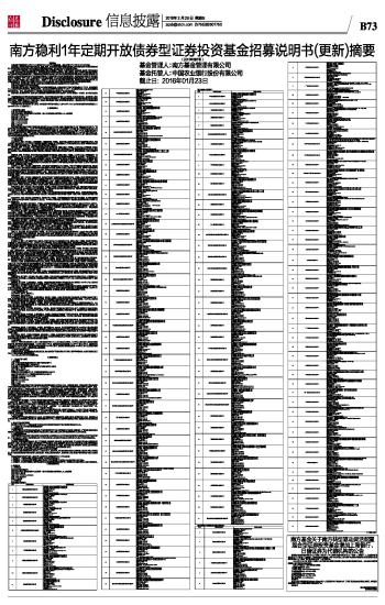 南方稳利1年定期开放债券型证券投资基金招募说明书(更新)摘要