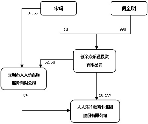 上市公司名称:人人乐连锁商业集团股份有限公司 股票上市地点:深圳证券交易所 股票简称:人人乐 股票代码:002336 信息披露义务人名称:新余众乐通投资有限公司 公司住所:新余市白竹路区安监局七楼 通讯地址:新余市白竹路区安监局七楼 股份变动性质:同一控制人之下的转让(减少) 签署日期:二〇一六年三月八日 信息披露义务人声明 一、信息披露义务人依据《中华人民共和国证券法》、《上市公司收购管理办法》及《公开发行证券的公司信息披露内容与格式准则第15号--权益变动报告书》、《公开发行证券的公司信息披露内容格式与准则第16号——上市公司收购报告书》及相关法律、法规编写本报告书。 二、信息披露义务人签署本权益变动报告书已获得必要的授权和批准,其行为亦不违反信息披露义务人章程或内部规则中的任何条款,或与之相冲突。 三、依据《中华人民共和国证券法》、《上市公司收购管理办法》的规定,本权益变动报告书已全面披露了信息披露义务人在人人乐连锁商业集团股份有限公司拥有权益的股份变动情况。 截至本报告书签署之日,除本报告书披露的持股信息外,信息披露义务人没有通过其他任何方式增加或减少其在人人乐连锁商业集团股份有限公司拥有权益的股份。 四、本次公司股权转让已经转让方股东会审议通过,信息披露义务人将依照相关法规,在履行相关义务和程序后办理股份过户手续。 五、本报告相关的权益变动须经深圳证券交易所审查批准后方可生效。 六、本次权益变动是根据本报告书所载明的资料进行的。信息披露义务人没有委托或者授权其他任何人提供未在本报告书列载的信息和对本报告书做出任何解释或者说明。 七、根据《收购管理办法》第十七条第二款之规定,本次权益变更属于在同一实际控制人控制的不同主体之间的股份转让,因此本次权益变动未聘请财务顾问。 八、信息披露义务人不存在《收购管理办法》第六条规定情形,并符合《收购管理办法》第五十条的规定。 释 义 本权益变动报告书中,除非另有所指,下列词语具有以下含义: ■ 第一节 信息披露义务人介绍 一、信息披露义务人基本情况 1. 名称:新余众乐通投资有限公司 2. 注册地:新余市白竹路区安监局七楼 3. 法定代表人:彭鹿凡 4. 注册资本:人民币4500万元 5. 注册号码:360502210040713 6. 企业类型及经济性质:有限责任公司 7. 主要经营范围:兴办实业;项目投资、实业投资、投资管理、资产管理;投资咨询(不含金融、保险、证券、期货业务)、商务信息咨询。(依法须经批准的项目,经相关部门批准后) 8. 经营期限:1999年9月8日至2029年9月8日 9. 税务登记证号码:360502715234396 10. 主要股东:何金明持有股份99%、宋琦持有股份1% 11. 通讯地址:新余市白竹路区安监局七楼 二、信息披露义务人董事及主要负责人情况 ■ 何金明先生1996年4月创办深圳市人人乐连锁商业有限公司(人人乐连锁商业集团股份有限公司前身);最近五年何金明先生一直在公司任职,现任公司总裁、董事长;同时兼任中国连锁经营协会常务理事、深圳市零售商业行业协会副会长。 何金明先生未受过中国证监会及其他有关部门的行政处罚、刑事处罚,也未涉及任何与经济纠纷有关的重大民事诉讼或者仲裁。 宋琦女士1996年4月参与创办深圳市人人乐连锁商业有限公司(人人乐连锁商业集团股份有限公司前身),最近五年宋琦女士一直在公司任职,先后任公司副董事长、副总裁。宋琦女士未受过中国证监会及其他有关部门的行政处罚、刑事处罚,也未涉及任何与经济纠纷有关的重大民事诉讼或者仲裁。 三、信息披露义务人与公司股权控制关系 信息披露义务人是公司的第二大股东,本次权益变动前,信息披露义务人股权控制及持股情况如下: ■ 四、信息披露义务人持有、控制其他上市公司5%以上的发行在外股份的情况 截止本报告签署之日,信息披露义务人在境内、境外均未持有、控制其他上市公司5%以上的发行在外股份。 第二节 权益变动目的 一、本次权益变动的目的 优化公司股权结构,促进公司可持续稳定健康发展。 二、未来十二个月继续增持或处置上市公司股份的计划 信息披露义务人自本次协议转让完成后,不再直接持有上市公司股份。未来12个月如有增持或处置上市公司股份将按照相关法律、法规的规定及时履行信息披露义务。 第三节 权益变动方式 一、股份变动基本情况 信息披露义务人通过协议转让方式,向人人乐董事长何金明转让直接持有的人人乐股份81,000,000股。 本次权益变动前,信息披露义务人直接持有人人乐股份81,000,000股,占人人乐总股本的20.25%;本次权益变动后,信息披露义务人不再直接持有人人乐股份,通过深圳市人人乐咨询服务有限公司间接控制公司股份24,000,000股,占人人乐总股本的6%。 二、股份转让协议的主要内容 (一)转让双方 转让方:众乐通 受让方:何金明 (二)标的股份 本次转让的标的股份为众乐通直接持有的人人乐公司81,000,000股无质押、无限售的流通股份,占公司股份总数的20.25%。 (三)转让价格 转让股份的价格按人民币9.89元/股计算,总价格为801,090,000元;转让股份的价格以转让协议签署前一日证券当日收盘价的90%确定。 (四)协议签订日期及生效条件 协议签订日期为2016年3月6日,协议自转让方盖章、受让方或其授权代表签字之日