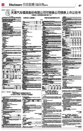 | 天津汽车模具股份有限公司可转换公司债券上市公告书 | 2016-03-23 | |