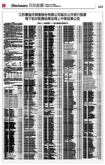 江苏赛福天钢索股份有限公司首次公开发行股票