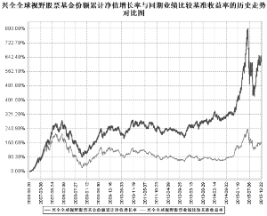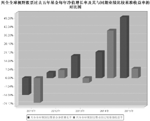 基金管理人:兴业全球基金管理有限公司 基金托管人:兴业银行股份有限公司 送出日期:2016年3月25日 §1 重要提示 1.1 重要提示 基金管理人的董事会、董事保证本报告所载资料不存在虚假记载、误导性陈述或重大遗漏,并对其内容的真实性、准确性和完整性承担个别及连带的法律责任。本年度报告已经三分之二以上独立董事签字同意,并由董事长签发。 基金托管人兴业银行股份有限公司根据本基金合同规定,于2016年3月24日复核了本报告中的财务指标、净值表现、利润分配情况、财务会计报告、投资组合报告等内容,保证复核内容不存在虚假记载、误导性陈述或者重大遗漏。 基金管理人承诺以诚实信用、勤勉尽责的原则管理和运用基金资产,但不保证基金一定盈利。 基金的过往业绩并不代表其未来表现。投资有风险,投资者在作出投资决策前应仔细阅读本基金的招募说明书及其更新。 本报告期自2015年01月01日起至12月31日止。 本年度报告摘要摘自年度报告正文,投资者欲了解详细内容,应阅读年度报告正文。 §2 基金简介 2.1 基金基本情况 ■ 2.2 基金产品说明 ■ 注:自2015年9月21日起,本基金业绩比较基准由“80%×中信标普300指数+15%×中信标普国债指数+5%×同业存款利率 ”变更为“80%×沪深300指数+15%×中证国债指数+5%×同业存款利率 ”。 2.3 基金管理人和基金托管人 ■ 2.4信息披露方式 ■ §3 主要财务指标、基金净值表现及利润分配情况 3.1 主要会计数据和财务指标 金额单位:人民币元 ■ 注:1、上述财务指标采用的计算公式,详见中国证券监督管理委员会发布的《证券投资基金信息披露编报规则第1号<主要财务指标的计算及披露>》、《证券投资基金会计核算业务指引》等相关法规。 2、本期已实现收益指基金本期利息收入、投资收益、其他收入(不含公允价值变动收益)扣除相关费用后的余额,本期利润为本期已实现收益加上本期公允价值变动收益。期末可供分配利润采用期末资产负债表中未分配利润与未分配利润中已实现部分的孰低数。 3、上述基金业绩指标不包括持有人认购或交易基金的各项费用(例如:开放式基金的申购赎回费、红利再投资费、基金转换费等),计入费用后实际收益水平要低于所列数字。 3.2 基金净值表现 3.2.1 基金份额净值增长率及其与同期业绩比较基准收益率的比较 ■ 注:1、本基金业绩比较基准的选取上主要基于如下考虑:沪深300指数选取了A股市场上规模最大、流动性最好的300只股票作为其成份股,对沪深市场的覆盖度高,具有良好的市场代表性。中证国债指数是一个全面反映国债市场(包括银行间、上交所、深交所)的综合性指数,也是债券品种中比较基准的参考。 本基金的业绩基准指数按照构建公式每交易日进行计算,按下列公式计算: Return t =80%×(沪深300指数 t / 沪深300指数 t-1 -1)+15%×(中证国债指数 t / 中证国债指数 t-1 -1) +5%×(同业存款利率t /360) Benchmark t =(1+Return t)×(1+Benchmark t-1)-1 其中,t=1,2,3,…T,T表示时间截至日。 2、自2015年9月21日起,本基金业绩比较基准由“80%×中信标普300指数+15%×中信标普国债指数+5%×同业存款利率 ”变更为“80%×沪深300指数+15%×中证国债指数+5%×同业存款利率 ”。 3.2.2 自基金合同生效以来基金份额累计净值增长率变动及其与同期业绩比较基准收益率变动的比较 ■ 注:1、净值表现所取数据截至到2015年12月31日。 2、按照《兴全全球视野股票型证券投资基金基金合同》的规定,本基金建仓期为2006年9月20日至2007年3月19日。建仓期结束时本基金各项资产配置比例符合基金合同规定的比例限制及投资组合的比例范围。 3、自2015年9月21日起,本基金业绩比较基准由“80%×中信标普300指数+15%×中信标普国债指数+5%×同业存款利率 ”变更为“80%×沪深300指数+15%×中证国债指数+5%×同业存款利率 ”。 3.2.3 过去五年基金每年净值增长率及其与同期业绩比较基准收益率的比较 ■ 注:自2015年9月21日起,本基金业绩比较基准由“80%×中信标普300指数+15%×中信标普国债指数+5%×同业存款利率 ”变更为“80%×沪深300指数+15%×中证国债指数+5%×同业存款利率 ”。 3.3 过去三年基金的利润分配情况 单位:人民币元 ■ §4 管理人报告 4.1 基金管理人及基金经理情况 4.1.1 基金管理人及其管理基金的经验 兴业全球基金管理有限公司是经中国证监会(证监基字[2003]100号文)批准,于2003年9月30日成立。2008年1月2日,中国证监会批准(证监许可[2008]6号)了公司股权变更申请,全球人寿保险国际公司(AEGON International B.V)受让本公司股权并成为公司股东。股权转让完成后,兴业证券股份有限公司的出资占注册资本的51%,全球人寿保险国际公司的出资占注册资本的49%。同时公司名称由“兴业基金管理有限公司”更名为“兴业全球人寿基金管理有限公司”。2008年7月7日,经中国证监会批准(证监许可[2008]888号文),公司名称由“兴业全球人寿基金管理有限公司”变更为“兴业全球基金管理有限公司”,同时,公司注册资本由人民币1.2亿元变更为人民币1.5亿元。 截止2015年12月31日,公司旗下管理着十七只基金,分别为兴全可转债混合型证券投资基金、兴全趋势投资混合型证券投资基金(LOF)、兴全货币市场证券投资基金、兴全全球视野股票型证券投资基金、兴全社会责任混合型证券投资基金、兴全有机增长灵活配置混合型证券投资基金、