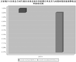 基金管理人:万家基金管理有限公司 基金托管人:上海银行股份有限公司 送出日期:2016年3月25日 §1 重要提示 基金管理人的董事会、董事保证本报告所载资料不存在虚假记载、误导性陈述或重大遗漏,并对其内容的真实性、准确性和完整性承担个别及连带的法律责任。本年度报告已经三分之二以上独立董事签字同意,并由董事长签发。 基金托管人上海银行股份有限公司根据本基金合同规定,于2016年3月24日复核了本报告中的财务指标、净值表现、利润分配情况、财务会计报告、投资组合报告等内容,保证复核内容不存在虚假记载、误导性陈述或者重大遗漏。 基金管理人承诺以诚实信用、勤勉尽责的原则管理和运用基金资产,但不保证基金一定盈利。 基金的过往业绩并不代表其未来表现。投资有风险,投资者在作出投资决策前应仔细阅读本基金的招募说明书及其更新。 本年度报告摘要自年度报告正文,投资者欲了解详细内容,应阅读年度报告正文。 本报告财务资料已经审计,安永华明会计师事务所为本基金出具了无保留意见的审计报告,请投资者注意阅读。 本报告期自2015年1月1日起至12月31日止。 §2 基金简介 2.1 基金基本情况 ■ 2.2 基金产品说明 ■ 2.3 基金管理人和基金托管人 ■ 2.4 信息披露方式 ■ 2.5 其他相关资料 ■ §3 主要财务指标、基金净值表现及利润分配情况 3.1 主要会计数据和财务指标 金额单位:人民币元 ■ 注:(1)本期已实现收益指基金本期利息收入、投资收益、其他收入(不含公允价值变动收益)扣除相关费用后的余额,本期利润为本期已实现收益加上本期公允价值变动收益; (2)所述基金业绩指标不包括持有人认购或交易基金的各项费用,计入费用后实际收益水平要低于所列数字; (3)期末可供分配利润采用期末资产负债表中未分配利润与未分配利润中已实现部分的孰低数。 4、本基金合同生效于2015年6月19日,截至2015年12月31日成立未满一年。 3.2 基金净值表现 3.2.1 基金份额净值增长率及其与同期业绩比较基准收益率的比较 万家瑞丰A ■ 万家瑞丰C ■ 3.2.2 自基金合同生效以来基金份额累计净值增长率变动及其与同期业绩比较基准收益率变动的比较 ■ ■ 注:(1)本基金合同生效日期为2015年6月19日,建仓期为自基金合同生效日起6个月,建仓期结束时各项资产配置比例符合基金合同要求。报告期末各项资产配置比例符合基金合同要求。 (2)本基金合同生效日为2015年6月19日,截至2015年12月31日未满一年。 3.2.3 自基金合同生效以来基金每年净值增长率及其与同期业绩比较基准收益率的比较 ■ ■ 注:1、本基金合同生效日为2015年6月19日,截至2015年12月31日未满一年,按实际存续期计算,不按整个自然年度进行折算。 3.3 过去三年基金的利润分配情况 本基金过去三年未分配利润。 §4 管理人报告 4.1 基金管理人及基金经理情况 4.1.1 基金管理人及其管理基金的经验 万家基金管理有限公司经中国证监会证监基金字[2002]44号文批准设立。公司现股东为中泰证券有限公司、新疆国际实业股份有限公司和山东省国有资产投资控股有限公司,住所:中国(上海)自由贸易试验区浦电路360号8层(名义楼层9层);办公地址:中国(上海)自由贸易试验区浦电路360号8层(名义楼层9层),注册资本1亿元人民币。目前管理二十三只开放式基金,分别为万家180指数证券投资基金、万家增强收益债券型证券投资基金、万家行业优选混合型证券投资基金(LOF)、万家货币市场证券投资基金、万家和谐增长混合型证券投资基金、万家双引擎灵活配置混合型证券基金、万家精选混合型证券投资基金、万家稳健增利债券型证券投资基金、万家中证红利指数证券投资基金(LOF)、万家添利债券型证券投资基金(LOF)、万家中证创业成长指数分级证券投资基金、万家信用恒利债券型证券投资基金、万家日日薪货币市场证券投资基金、万家强化收益定期开放债券型证券投资基金、万家上证50交易型开放式指数证券投资基金、万家新利灵活配置混合型证券投资基金、万家双利债券型证券投资基金、万家现金宝货币市场证券投资基金、万家瑞丰灵活配置混合型证券投资基金、万家瑞兴灵活配置混合型证券投资基金、万家品质生活灵活配置混合型型证券投资基金、万家瑞益灵活配置型证券投资基金、万家新兴蓝筹灵活配置混合型证券基金。 4.1.2 基金经理(或基金经理小组)及基金经理助理简介 ■ 注:1、此处的任职日期和离任日期均以公告为准。 2、证券从业的含义遵从行业协会《证券业从业人员资格管理办法》的相关规定。 4.2 管理人对报告期内本基金运作遵规守信情况的说明 本报告期内,本基金管理人严格遵守基金合同、《证券投资基金法》、《公开募集证券投资基金运作管理办法》等法律、法规和监管部门的相关规定,依照诚实信用、勤勉尽责、安全高效的原则管理和运用基金资产,在认真控制投资风险的基础上,为基金持有人谋取最大利益,没有损害基金持有人利益的行为。 4.3 管理人对报告期内公平交易情况的专项说明 4.3.1 公平交易制度和控制方法 根据中国证监会颁布的《证券投资基金管理公司公平交易制度指导意见》,公司制定了《万家基金管理有限公司公平交易管理办法》,涵盖了研究、授权、投资决策和交易执行等投资管理活动的各个环节,严禁直接或通过第三方的交