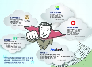 首批五家民营银行总资产近800亿 三家不良率为零民商银行盈利千万,华瑞银行盈亏平衡,金城银行亏损2900万,微众银行个人客户超600万,网商银行放贷450亿 2016-03-28 来源:证券时报网 作者:梅菀