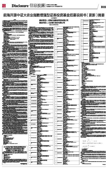前海开源中证大农业指数增强型证券投资基金招募说明书(更新)摘要