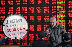 昨日两市高开高走,券商股领涨大盘,题材股也表现抢眼,高送转、无人驾驶、人工智能、网络安全等板块涨幅居前。终盘沪指重上3000点关口,报3000.64点,涨幅2.77%;深成指涨幅达到3.48%;创业板报2248.78点,升4.47%。两市合计成交6373亿元,较上一交易日增近千亿。亚太股市则涨跌互见,香港恒生指数走势基本与A股同步,收盘也有2.15%的涨幅。吴比较/制图 本版导读: