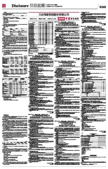 万达电影院线股份有限公司2015年度报告摘要 2016-03-31 来源:证券时报网 作者:
