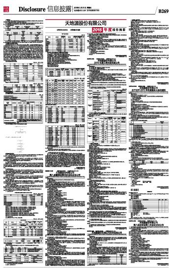 天地源股份有限公司2015年度报告摘要 2016-03-31 来源:证券时报网 作者: