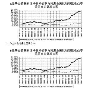 (上接B230版) 由于证券市场波动、上市公司合并或基金规模变动等基金管理人之外的原因导致的投资组合不符合上述约定的比例不在限制之内,但基金管理人应在10个交易日内进行调整,以达到标准。其中因交易品种存在锁定期的原因,当股票等权益类资产合计超过基金净值的20%,基金管理人将在相关交易品种锁定期满后10个交易日内调整,以达到标准。法律法规另有规定的从其规定。 2、禁止行为 本基金禁止从事下列行为: (1)承销证券; (2)向他人贷款或者提供担保; (3)从事承担无限责任的投资; (4)买卖其他基金份额,但是法律法规另有规定的除外; (5)向其基金管理人、基金托管人出资或者买卖其基金管理人、基金托管人发行的股票或者债券; (6)买卖与其基金管理人、基金托管人有控股关系的股东或者与其基金管理人、基金托管人有其他重大利害关系的公司发行的证券或者承销期内承销的证券; (7) 从事内幕交易、操纵证券交易价格及其他不正当的证券交易活动; (8)依照法律、行政法规有关规定,由中国证监会规定禁止的其他活动。 七、基金投资组合报告 本投资组合报告所载数据截至2015年12月31日,本报告中所列财务数据未经审计。 1、 报告期末基金资产组合情况 ■ 2、 报告期末按行业分类的股票投资组合 本基金本报告期末未持有股票投资。 3、 报告期末按公允价值占基金资产净值比例大小排序的前十名股票投资明细 本基金本报告期末未持有股票投资,故无股票投资明细。 4、 报告期末按债券品种分类的债券投资组合 ■ 5、 报告期末按公允价值占基金资产净值比例大小排名的前五名债券投资明细 ■ 6、报告期末按公允价值占基金资产净值比例大小排名的前十名资产支持证券投资明细 本基金本报告期末未持有资产支持证券。 7、报告期末按公允价值占基金资产净值比例大小排序的前五名贵金属投资明细 本基金本报告期末未持有贵金属投资。 8、报告期末按公允价值占基金资产净值比例大小排名的前五名权证投资明细 本基金本报告期末未持有权证。 9、 报告期末本基金投资的国债期货交易情况说明 (1)本期国债期货投资政策 本基金未投资国债期货。 (2)报告期末本基金投资的国债期货持仓和损益明细 本基金未投资国债期货。 (3)本期国债期货投资评价 本基金未投资国债期货。 10、投资组合报告附注 (1)14长证债(112232)于2015年5月22日收到湖北证监局关于对长江证券股份有限公司采取出具警示函监管措施的决定,因公司未与部分研究报告转载机构签订协议,公司部分研究报告的报送审核人员和对外发送渠道不符合公司内部规定,决定对公司采取出具警示函的监管措施,同时要求在2015年5月29日前向湖北证监局提交书面报告,接受检查验收。 本基金管理人通过对上述上市公司进行进一步了解和分析,认为上述处分不会对公司的投资价值构成实质性影响,因此本基金管理人对上述债券的投资判断未发生改变。 报告期内,本基金投资的前十名证券的其余九名证券的发行主体没有被监管部门立案调查或在本报告编制日前一年内受到公开谴责、处罚的情况。 (2)本基金本报告期末未持有股票投资。 (3)其他各项资产构成 ■ (4)报告期末持有的处于转股期的可转换债券明细 本基金本报告期末未持有处于转股期的可转换债券。 (5)报告期末前十名股票中存在流通受限情况的说明 本基金本报告期末未持有股票投资。 八、 基金的业绩 本基金业绩数据为截止2015年12月31日的数据,本报告中所列数据未经审计。 (一)本报告期基金份额净值增长率及其与同期业绩比较基准收益率的比较 1、华宝兴业增强收益债券A: ■ 2、华宝兴业增强收益债券B: ■ (二)自基金合同生效以来基金累计净值增长率变动及其与同期业绩比较基准收益率变动的比较 华宝兴业增强收益债券型证券投资基金 累计份额净值增长率与业绩比较基准收益率的历史走势对比图 (2009年2月17日至2015年12月31日) 1、华宝兴业增强收益债券A: ■ 注:按照基金合同的约定,自基金成立日期的6个月内达到规定的资产组合,截至2009年8月16日,本基金已达到合同规定的资产配置比例。