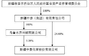环鹏公司为本公司股东,持有股份75,000,000股,持股比例5.39%。本次股权无偿划转完成后,环鹏公司将成为中泰集团的全资子公司,中泰集团直接持有本公司股份340,503,621股,通过环鹏公司间接持有本公司股份75,000,000股。股权控制关系图如下: