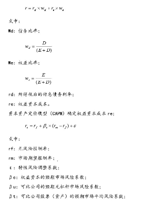 资本资产加权平均成本模型(WACC)确定折现率r:
