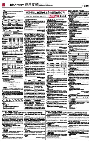 珠海恒基达鑫国际化工仓储股份有限公司2015年度报告摘要