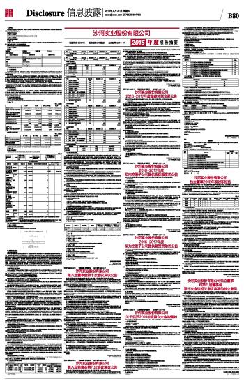 沙河实业股份有限公司2015年度报告摘要