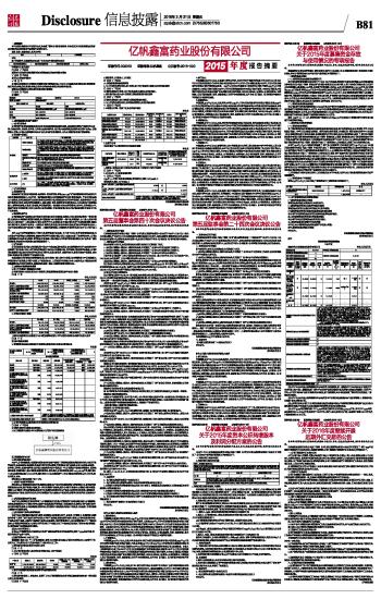 亿帆鑫富药业股份有限公司2015年度报告摘要