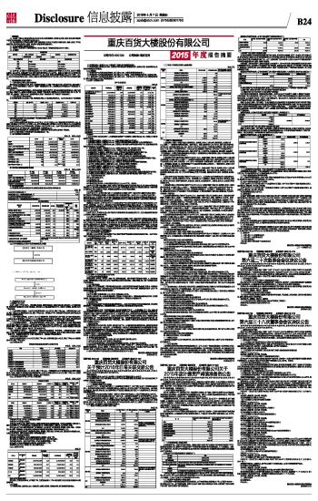 证券代码:600729 证券简称:重庆百货 公告编号:临2016-018 重庆百货大楼股份有限公司 第六届三十八次董事会会议决议公告 本公司董事会及全体董事保证本公告内容不存在任何虚假记载、误导性陈述或者重大遗漏,并对其内容的真实性、准确性和完整性承担个别及连带责任。 一、董事会会议召开情况 重庆百货大楼股份有限公司(以下简称“公司”)于2016年3月25日以书面和电子邮件方式向全体董事发出召开第六届三十八次董事会会议通知和会议材料。本次会议于2016年4月5日上午9:00在公司31楼一会议室以现场表决方式召开,公司7名董事会成员中7名董事全部出席。公司监事会列席本次会议,符合《公司法》和《重庆百货大楼股份有限公司章程》的有关规定。会议由董事长何谦先生提议召开并主持。 二、董事会会议审议情况 (一)审议通过《关于聘请评估师对公司资产进行减值测试的议案》 董事会决定聘请重庆华康资产评估土地房地产估价有限责任公司对公司2015年末存在可能发生减值迹象的资产包括对存货、固定资产、长期待摊费用等,进行资产减值测试。 表决情况:同意7票,反对0票,弃权0票。 (二)审议通过《关于对拟关闭门店及长期亏损门店等计提减值准备的管理办法》 内容详见www.sse.com.cn。 表决情况:同意7票,反对0票,弃权0票。 (三)审议通过《关于对公司资产计提减值准备的议案》 经对2015年末存在可能发生减值迹象的资产包括存货、固定资产、长期待摊费用等进行全面清查和资产减值测试后,公司决定计提2015年度各项资产减值准备38,411.45万元。具体为: 1、对存货计提存货跌价准备9,330.11万元; 2、公司决定关闭扭亏无望或租约到期的重百临江商场、新世纪钓鱼城商厦、重百广安商场、重百电器合江店、新世纪金佛大道超市店、新世纪南津街超市店、新世纪璧山超市店、新世纪经纬大道超市店、新世纪龙头寺超市店和重百遵义香港路超市等门店。 对上述拟关闭门点,计提减值准备1,009.53万元; 3、对超额亏损门店和长期亏损门店计提长期资产减值准备27,896.74万元; 4、对应收账款和其他应收款、可供出售金额资产及其他计提减值准备175.07万元; 考虑所得税影响因素,本次计提各项资产减值准备将减少公司2015年度合并净利润33,494.68万元,相应减少公司2015年末所有者权益33,494.68万元。 董事会意见:公司基于谨慎性原则,按照《企业会计准则》和公司《关于对拟关闭门店及长期亏损门店等计提减值准备的管理办法》等相关会计政策,于2015年末对存货、固定资产、长期待摊费用等资产进行了全面清查。在清查的基础上,聘请重庆华康对上述资产进行减值评估,并根据评估情况对可能发生资产减值损失的资产计提减值准备。董事会认为本次计提资产减值准备依据充分,公允的反映了公司资产状况,使公司关于资产价值的会计信息更加真实可靠,具有合理性。 内容详见《重庆百货大楼股份有限公司关于2015年度计提资产减值准备的公告》(公告编号:2016-020)。 表决情况:同意7票,反对0票,弃权0票。 本议案尚需提交公司股东大会审议。 (四)审议通过《公司2015年度报告及摘要》 内容详见www.sse.com.cn。 表决情况:同意7票,反对0票,弃权0票。 本议案尚需提交公司股东大会审议。 (五)审议通过《公司2015年度董事会工作报告》 表决情况:同意7票,反对0票,弃权0票。 本议案尚需提交公司股东大会审议。 (六)审议通过《公司2015年度独立董事述职报告》 内容详见www.sse.com.cn。 表决情况:同意7票,反对0票,弃权0票。 本议案尚需提交公司股东大会审议。 (七)审议通过《公司审计委员会2015年度履职情况报告》 表决情况:同意7票,反对0票,弃权0票。 (八)审议通过《公司2015年度总经理工作报告》 表决情况:同意7票,反对0票,弃权0票。 (九)审议通过《公司2015年度财务决算报告及2016年度财务预算报告》 表决情况:同意7票,反对0票,弃权0票。 本议案尚需提交公司股东大会审议。 (十)审议通过《公司2015年度利润分配预案》 2015年度,公司经审计实现利润总额43,787.44万元,应缴纳企业所得税7,333.84万元,应支付少数股东损益-282.91万元,实现归属于母公司所有者的净利润为36,736.52万元。根据《公司法》及《公司章程》的规定,2015年度利润分配预案拟按公司现总股本406,528,465股,按每10股派发现金红利2.80元(含税),共计11,382.80万元向全体股东分配。分配后,剩余未分配利润留待以后年度分配。本次不进行资本公积金转增股本。 表决情况:同意7票,反对0票,弃权0票。 本议案尚需提交公司股东大会审议。 (十一)审议通过《公司2015年度内部控制评价报告》 内容详见www.sse.com.cn。 表决情况:同意7票,反对0票,弃权0票。 (十二)审议通过《关于预计2016年日常关联交易的议案》 内容详见《重庆百货大楼股份有限公司关于预计2016年日常关联交易的公告》(公告编号:2016-021)。 关联董事何谦先生、涂涌先生、高平先生回避了此议案的表决,由4名非关联董事进行表决。 独立董事对此发表同意意见。 表决情况:同意4票,反对0票,弃权0票。 (十三)审议通过《关于授权经理办公会审批2016年度委托理财权限的议案》 董事会授权经理办公会对委托理财金额在23亿元范围内(含23亿元,金额连续十二个月内累计计算)的保本型理财产品投资进行审批。该项授权自董事会决议生效后十二个月内有效。 表决情况:同