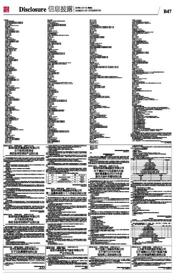 (上接B46版) (5)招商银行股份有限公司 注册地址:深圳市福田区深南大道7088号招商银行大厦 办公地址:深圳市福田区深南大道7088号招商银行大厦 法定代表人:李建红 电话:0755-83077278传真:0755-83195050 联系人:邓炯鹏 客户服务电话:95555 公司网址:www.cmbchina.com (6)华夏银行股份有限公司 注册地址:北京市东城区建国门内大街22号 办公地址:北京市东城区建国门内大街22号 法定代表人:吴建 电话:010-85238982 传真:010-85238680 联系人:徐昊光 客户服务电话:95577 公司网址:www.hxb.com.cn (7)中国民生银行股份有限公司 注册地址:北京市西城区复兴门内大街2号 办公地址:北京市西城区复兴门内大街2号 法定代表人:洪崎 传真:010-57092611 联系人:杨成茜 客户服务电话:95568 公司网址:www.cmbc.com.cn (8)上海浦东发展银行股份有限公司 注册地址:上海市中山东一路12号 办公地址:上海市中山东一路12号 法定代表人:吉晓辉 电话:021-61618888 传真:021-63604199 联系人:唐苑 客户服务电话:95528 公司网址:www.spdb.com.cn (9)宁波银行股份有限公司 注册地址:宁波市鄞州区宁南南路700号 办公地址:宁波市鄞州区宁南南路700号 法定代表人:陆华裕 电话:0574-89068340 传真:0574-87050024 联系人:胡技勋 客户服务电话:95574 公司网址:www.nbcb.com.cn (10)东莞银行股份有限公司 注册地址:东莞市莞城区体育路21号 办公地址:东莞市莞城区体育路21号 法定代表人:廖玉林 电话:0769-22119061 传真:0769-22117730 联系人:陈幸 客户服务电话:4001196228 公司网址:www.dongguanbank.cn (11)渤海银行股份有限公司 注册地址:天津市河西区马场道201-205号 办公地址:天津市河西区马场道201-205号 法定代表人:刘宝凤 电话:022-58314846 传真:022-58316569 联系人:王宏 客户服务电话:400-888-8811 公司网址:www.cbhb.com.cn (12) 杭州联合农村商业银行股份有限公司 注册地址:杭州市建国中路99号? 办公地址:杭州市建国中路99号 法定代表人:张晨 电话:0571-87923324 传真:0571-87923214 联系人:姜鹏 客服电话:96592? 公司网址:www.urcb.com? (13)苏州银行股份有限公司 注册地址:中国苏州市工业园区钟园路728号 办公地址:中国苏州市工业园区钟园路728号 法定代表人:王兰凤 电话:0512-69868373 传真:0512-69868370 联系人:项喻楠 客服电话:96067 公司网址:www.suzhoubank.com (14)国海证券股份有限公司 注册地址:广西桂林市辅星路13号 办公地址:广西南宁市滨湖路46号国海大厦 法定代表人:何春梅 电话:0755-83709350 传真:0755-83704850 联系人:牛孟宇 客户服务电话:95563 公司网址:www.ghzq.com.cn (15)中信建投证券股份有限公司 注册地址:北京市朝阳区安立路66号4号楼 办公地址:北京市东城区朝内大街188号 法定代表人:王常青 电话:010-85130588 传真:010-65182261 联系人:权唐 客户服务电话:95587 公司网址:www.csc108.com (16)国泰君安证券股份有限公司 注册地址:上海市浦东新区商城路618号 办公地址:上海市浦东新区银城中路168号上海银行大厦 法定代表人:万建华 电话:021-38676666 传真:021-38670666 联系人:芮敏祺 客户服务电话:400-8888-666 公司网址:www.gtja.com (17)海通证券股份有限公司 注册地址:上海市广东路689号海通证券大厦 办公地址:上海市广东路689号海通证券大厦 法定代表人:王开国 电话:021-23219000 传真:021-23219100 联系人:李笑鸣 客户服务电话:95553或拨打各城市营业网点咨询电话 公司网址:www.htsec.com (18)中国银河证券股份有限公司 注册地址:北京市西城区金融大街35号国际企业大厦C座 办公地址:北京市西城区金融大街35号国际企业大厦C座 法定代表人:陈有安 电话:010-66568450 传真:010-66568990 联系人:邓颜 客户服务电话:400-888-8888 公司网址:www.chinastock.com.cn (19)兴业证券股份有限公司 注册地址:福州市湖东路268号 办公地址:上海浦东新区民生路1199弄证大五道口广场1号楼21层 法定代表人:兰荣 电话:021-38162212 联系人:黄英 客户服务电话: 95562 公司网址:www.xyzq.com.cn (20)申万宏源证券有限公司 注册地址:上海市徐汇区长乐路989号45层 办公地址:上海市徐汇区长乐路989号45层 法定代表人:李梅 电话:021-33389888 传真:021-33388224 联系人:黄莹 客户服务电话:95523、4008895523 公司网址:www.swhysc.com (21)招商证券股份有限公司 注册地址:深圳市福田区益田路江苏大厦A座38-45层 办公地址:深圳市福田区益田路江苏大厦A座38-45层 法定代表人:宫少林 电话:0755-82943666 传真:0755-83734343 联系人:林生迎 客户服务电话:95565 公司网址:www.newone.com.cn (22)中信证券股份有限公司 注册地址:广东省深圳市福田区中心三路8号卓越时代广场(二期)北座 办公地址:广东省深圳市福田区中心三路8号中信证券大厦 法定代表人:王东明 电话:010-60838696 传真:010-60833739 联系人:顾凌 客户服务电话:95548 公司网址:www.cs.ecitic.com (23)齐鲁证券有限公司 注册地址:山东省济南市经七路86号 办公地址:山东省济南市经七路86号 法定代表人:李玮 电话:0531-68889155 传真:0531-68889357 联系人:吴阳 客户服务电话:95538 公司网址: www.qlzq.com.cn (24)广发证券股份有限公司 注册地址:广州天河区天河北路183-187号大都会广场43楼(4301-4316房) 办公地址:广东省广州天河北路大都会广场5、18、19、36、38、39、41、42、43、44楼 法定代表人:孙树明 电话:020-87555888 联系人:黄岚 客户服务电话:95575 公司网址:www.gf.com.cn (25)东北证券股份有限公司 注册地址:长春市自由大路1138号 办公地址:长春市自由大路1138号 法定代表人:杨树财 电话:043