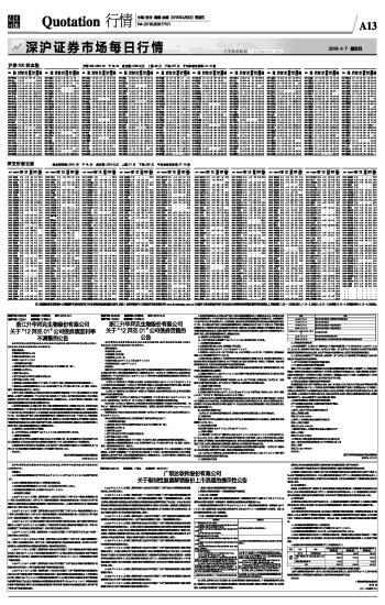 | 深沪证券市场每日行情 | 2016-04-08 | |