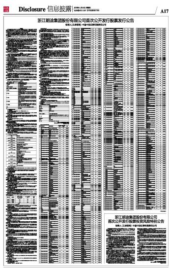 浙江朗迪集团股份有限公司首次公开发行股票发行公告