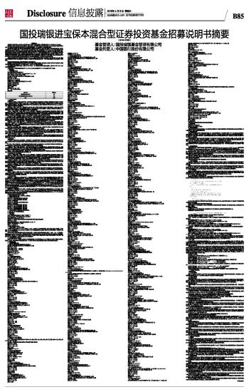 国投瑞银进宝保本混合型证券投资基金招募说明书摘要(2016年4月更新) 2016-04-09 来源:证券时报网 作者: