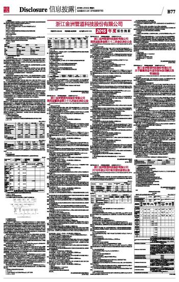 浙江金洲管道科技股份有限公司2015年度报告摘要 2016-04-09 来源:证券时报网 作者: