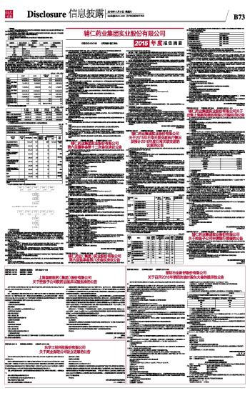 | 辅仁药业集团实业股份有限公司2015年度报告摘要 | 2016-04-09 |
