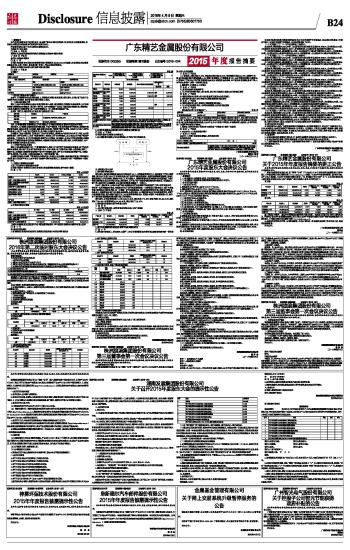 | 广东精艺金属股份有限公司2015年度报告摘要 | 2016-04-09 |