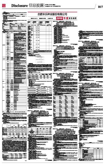 合肥丰乐种业股份有限公司2015年度报告摘要 2016-04-09 来源:证券时报网 作者: