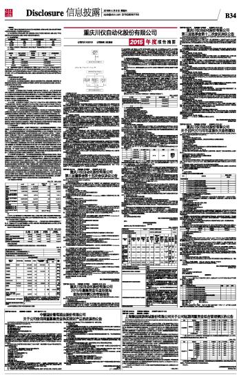 重庆川仪自动化股份有限公司2015年度报告摘要