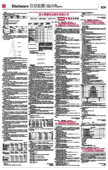 崇义章源钨业股份有限公司2015年度报告摘要 2016-04-12 来源:证券时报网 作者: