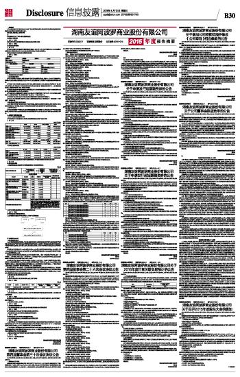 湖南友谊阿波罗商业股份有限公司2015年度报告摘要 2016-04-13 来源:证券时报网 作者: