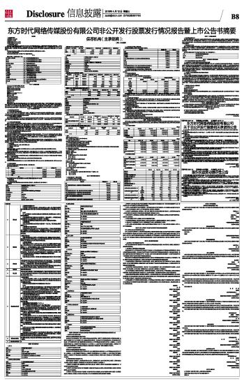 东方时代网络传媒股份有限公司非公开发行股票发行情况报告暨上市公告书摘要 2016-04-13 来源:证券时报网 作者: