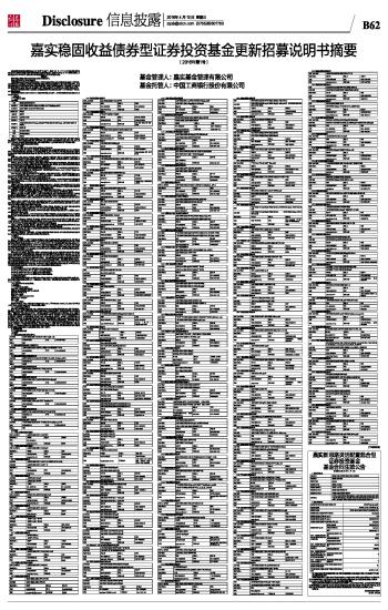 嘉实稳固收益债券型证券投资基金更新招募说明书摘要