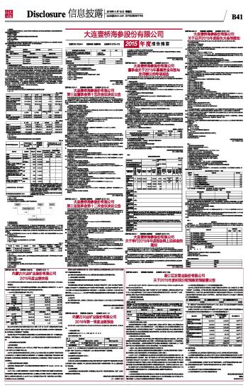 | 大连壹桥海参股份有限公司2015年度报告摘要 | 2016-04-15 | |