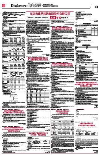深圳市建艺装饰集团股份有限公司2015年度报告摘要