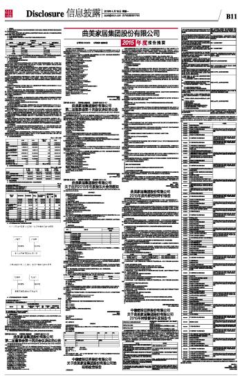 曲美家居集团股份有限公司2015年度报告摘要 2016-04-18 来源:证券时报网 作者: