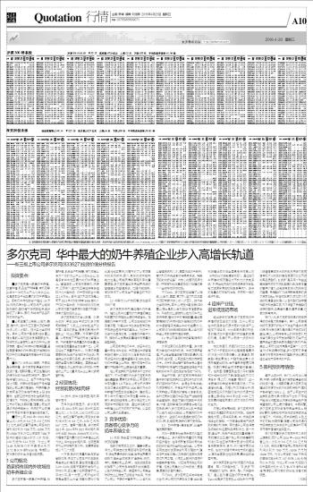 多尔克司 华中最大的奶牛养殖企业步入高增长轨道——新三板上市公司多尔克司(833627)投资价值分析报告 2016-04-21 来源:证券时报网 作者: