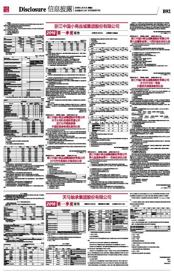 天马轴承集团股份有限公司2016第一季度报告 2016-04-21 来源:证券时报网 作者: