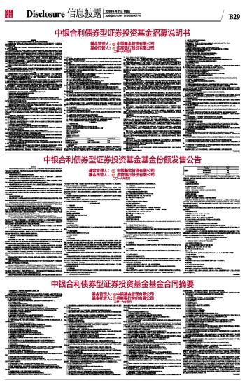 中银合利债券型证券投资基金基金合同摘要 2016-04-21 来源:证券时报网 作者: