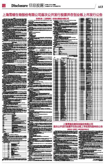 上海雪榕生物股份有限公司首次公开发行股票并在创业板上市发行公告