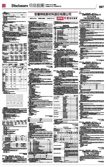安徽神剑新材料股份有限公司2015年度报告摘要