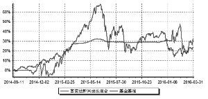 政策规划亮点不断、流动性宽松的特征不变、汇率波动在可控范围内,市场进入修复期。 投资策略方面:我们依然积极布局战略新兴产业,在市场深度调整阶段,我们一方面对仓位进行了严格控制;另一方面,我们适当加大了安全边际较高的行业以及个股的配置;后期,随着市场企稳反弹,我们在保持恰当仓位的前提下,提高了对长期看好标的的配置。通过努力,希望在减少净值回撤风险的前提下,在市场波动中完成仓位调整,为后续的行情做好准备。 行业配置方面,我们认为能够穿越周期的更多是代表未来经济发展方向的战略新兴产业,与此有关的信息技术、智能制造、生物医药、新能源汽车以及环保等行业将进行重点配置。 4.5 报告期内基金的业绩表现 截止2016年3月31日,本基金份额净值为1.3233元,本报告期份额净值增长率为1.49%,同期业绩比较基准增长率为-9.98%。 4.6 报告期内基金持有人数或基金资产净值预警说明 无 4.7 管理人对宏观经济、证券市场及行业走势的简要展望 宏观经济方面:一方面国内经济需求乏力,供给侧改革进入攻坚阶段;另一方面国外经济增长乏力,外需不足。从基本面看,预计未来一段时间宏观经济将呈现L型弱平衡的运行态势。但从微观企业的表现看,在经济转型背景下,尽管宏观增长动力不足,但结构性的增长亮点也会层出不穷。 流动性方面:为改革和转型赢得时间,"稳增长"仍不可或缺,预计整体流动性依然宽松,但2016年经济形势更为复杂,外有美国加息预期,内有供给侧改革推进,因而边际改善可能要弱于2015年。 在对整体宏观经济基本面以及流动性判断的基础上,我们认为2016年市场将会维持震荡走势,结构性机会仍会延续,改革与创新预计将会有较好的市场表现,业绩和成长空间仍将是筛选股票的主要标准,而估值标准依然需要兼顾。年初以来资本市场剧烈波动是多重因素(人民币贬值、注册制预期、熔断机制加剧市场恐慌……)叠加的结果,随着利空因素的逐步消除,我们认为市场逐步进入行情修复阶段。我们将重点关注战略新兴产业的投资机会,主要包括信息技术、健康经济、智能装备、新能源汽车等。 本基金将在市场分化过程中发挥"自下而上"精选个股的优势,配合适时的仓位控制,力争为投资者带来较好的投资回报。 §5 投资组合报告 5.1 报告期末基金资产组合情况 ■ ■ 注:注:由于四舍五入的原因,各比例的分项与合计可能有尾差。 5.2 报告期末按行业分类的股票投资组合 ■