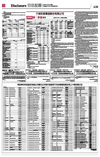 宁波拓普集团股份有限公司2016第一季度报告 2016-04-25 来源:证券时报网 作者:
