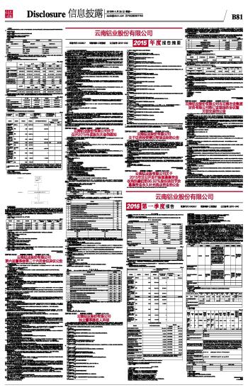 云南铝业股份有限公司2015年度报告摘要 2016-04-25 来源:证券时报网 作者: