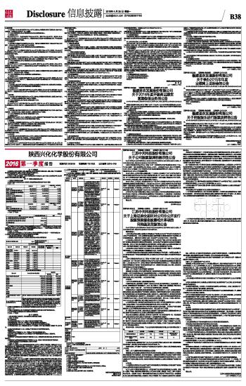 陕西兴化化学股份有限公司2016第一季度报告 2016-04-25 来源:证券时报网 作者: