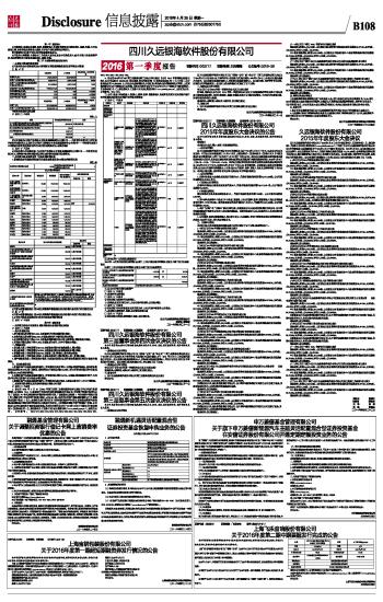 四川久远银海软件股份有限公司2016第一季度报告 2016-04-25 来源:证券时报网 作者: