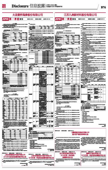 大连壹桥海参股份有限公司2016第一季度报告 2016-04-25 来源:证券时报网 作者: