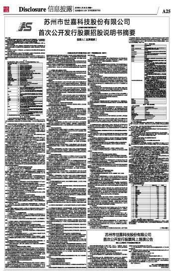 苏州市世嘉科技股份有限公司首次公开发行股票招股说明书摘要
