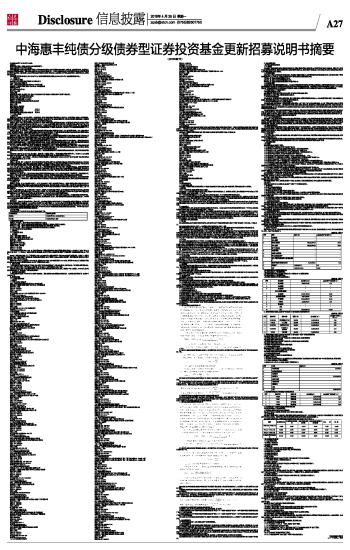 中海惠丰纯债分级债券型证券投资基金更新招募说明书摘要