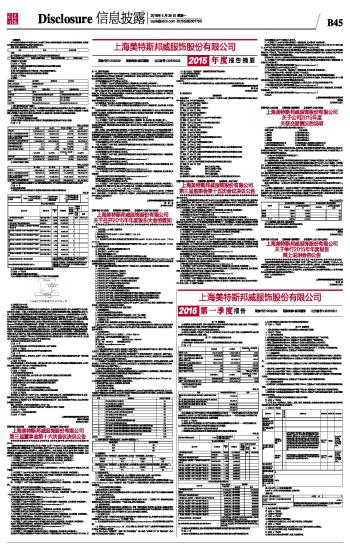 上海美特斯邦威服饰股份有限公司2016第一季度报告